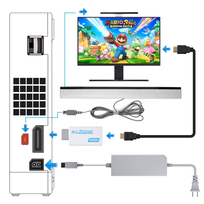 - ✨🎁🎮『WHAT YOU WII GET』: 1 x Wii to HDMI Adapter for Wii; 1 x AC Power Adapter for Wii; 1 x Wired Sensor Bar for Wii. 1 x 5ft High Speed HDMI Cable;This is truly a necessity for a games master