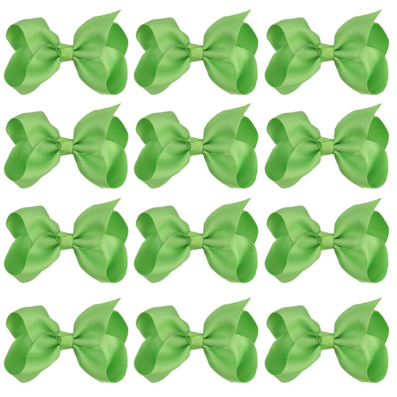 4 Inch Boutique Girls Hair Bows Hair Clips for Baby Girls Toddlers 12 Pcs Solid Color (Apple Green)