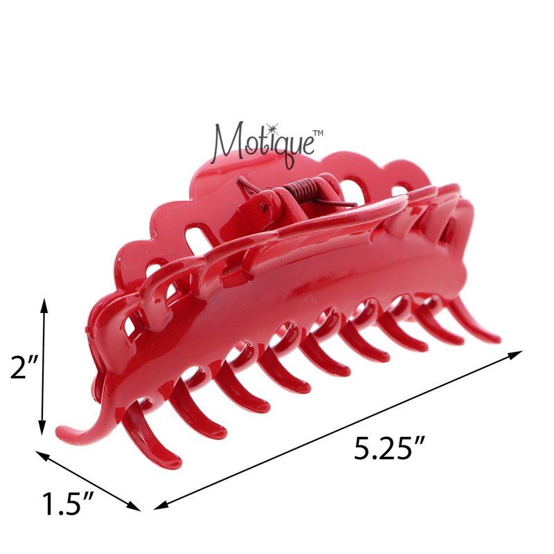 4 Inch Scalloped Jaw Clip With Holes-Red