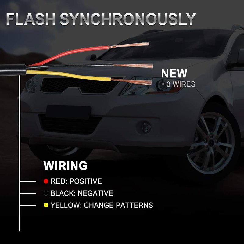 - TIPS: Set all lights to the same pattern, then connect the yellow wires together and the lights WILL SYNC to each other as long as it’s the SAME pattern! Different patterns, NO SYNC! Customer satisfaction guarantee and customer support within 24 hours.