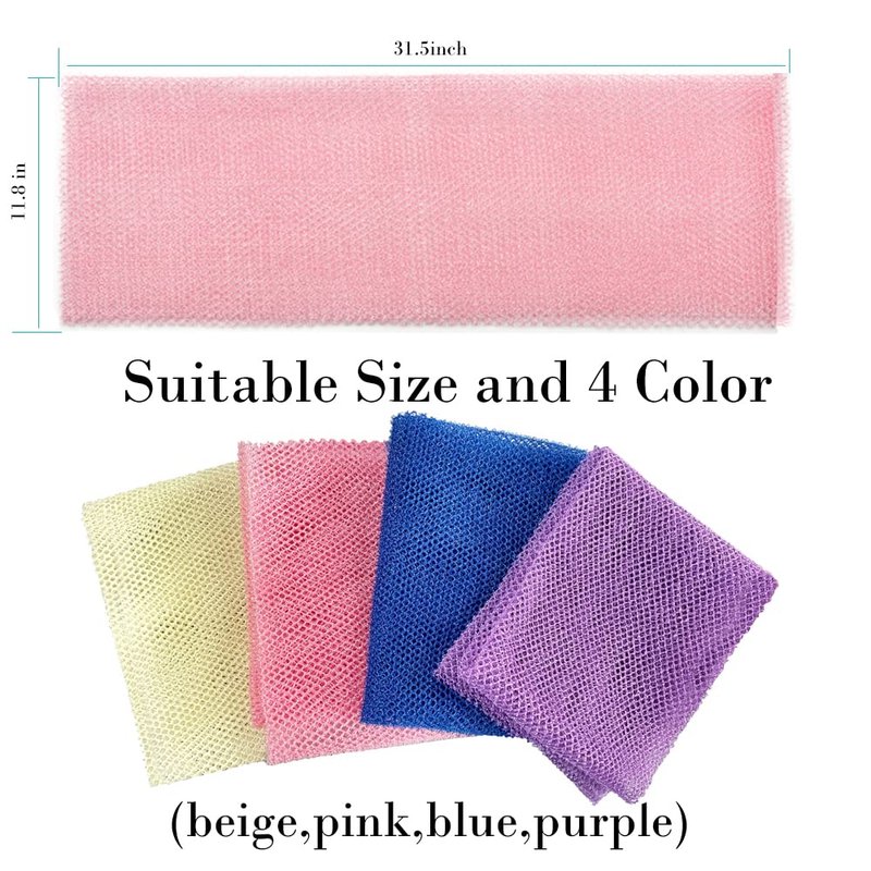 4 Pack Bath Sponge Net, Exfoliating Body Scrubber,Back Scrubber for Shower,Body Scrubber Exfoliator to Enjoy Shower(Pink&Blue&Purple&Beige)