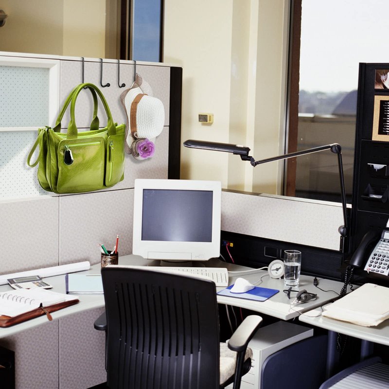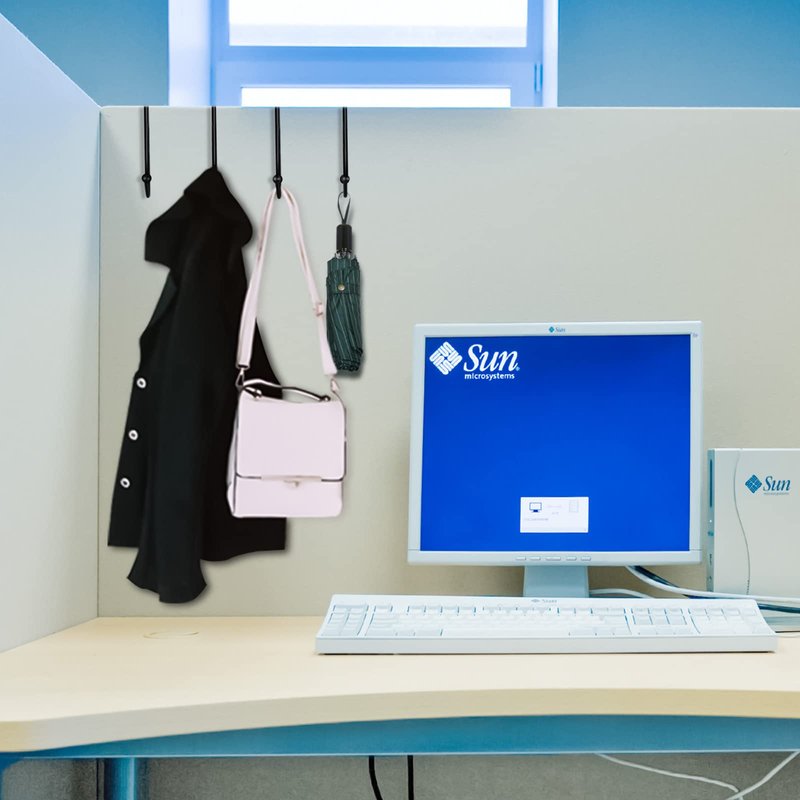 - office desk storage hooks no need nails, screws, and other tools to install, easy to use. The small size fit the narrow office cubicles with limited storage.