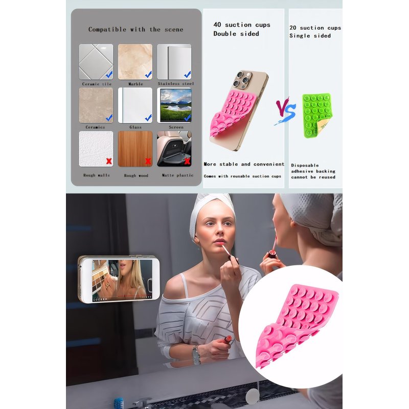 - Strong Adsorption: Equipped with double-sided 40 suction cups arranged in a 5x8 matrix, it provides a reliable grip that efficiently holds your phone in place