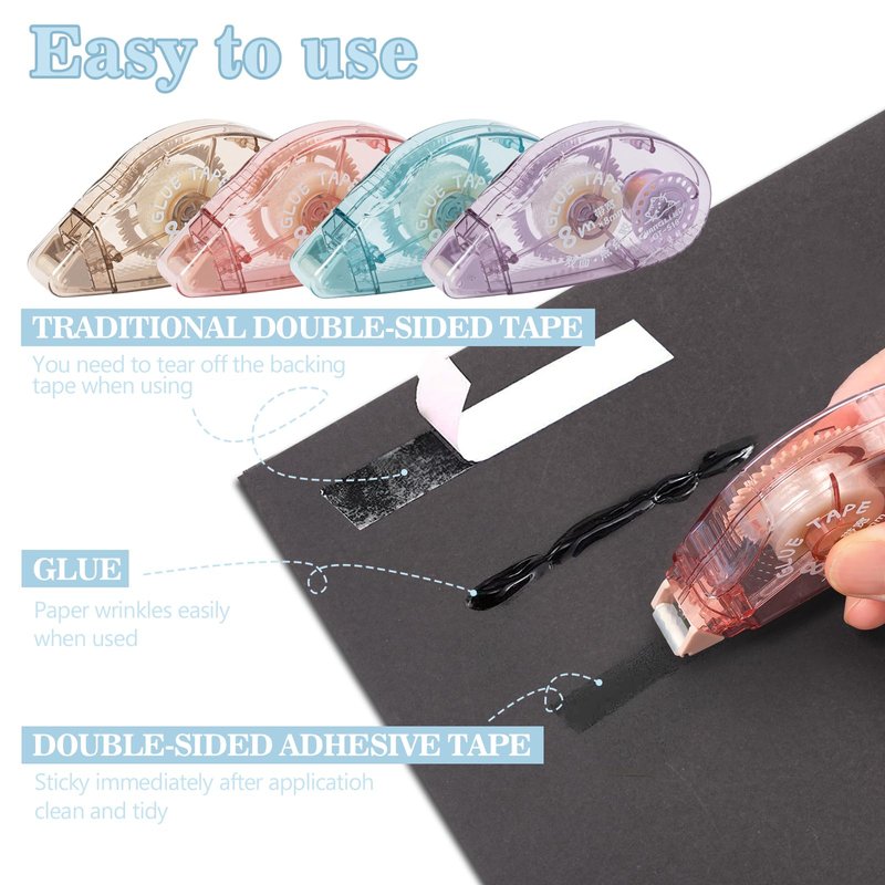 - 【Double Sided Tape Set】A set of 4 pieces of tape rolls in 4 different colors-purple/blue/pink/brown.