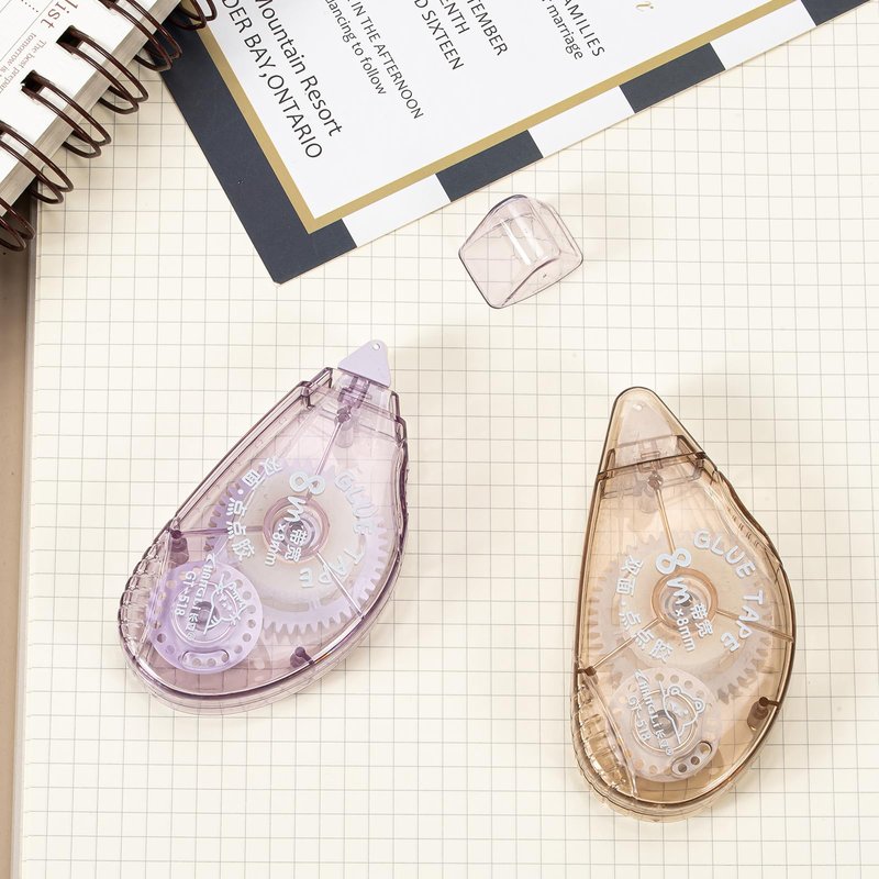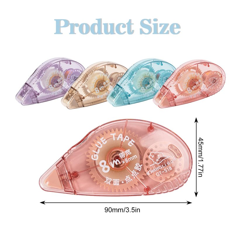 Package Includes: 4 Packs Glue Tape Roller A SetColor: Purple/Blue/Pink/BrownSize: Width 8MM, Length 8MFeature:PortableTidyApply quickly and evenly