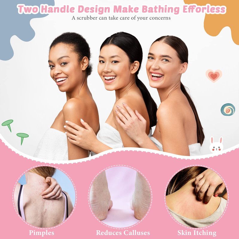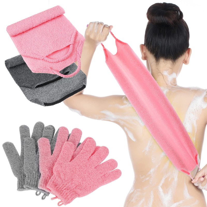 - Package Contains: what you will get are 2 pieces of back scrubbers and 2 pairs (4 pieces) of bath gloves in 2 colors, pink and gray, 6 pieces in total, meeting your daily using needs for body scrubbing, or you can share them with your family members