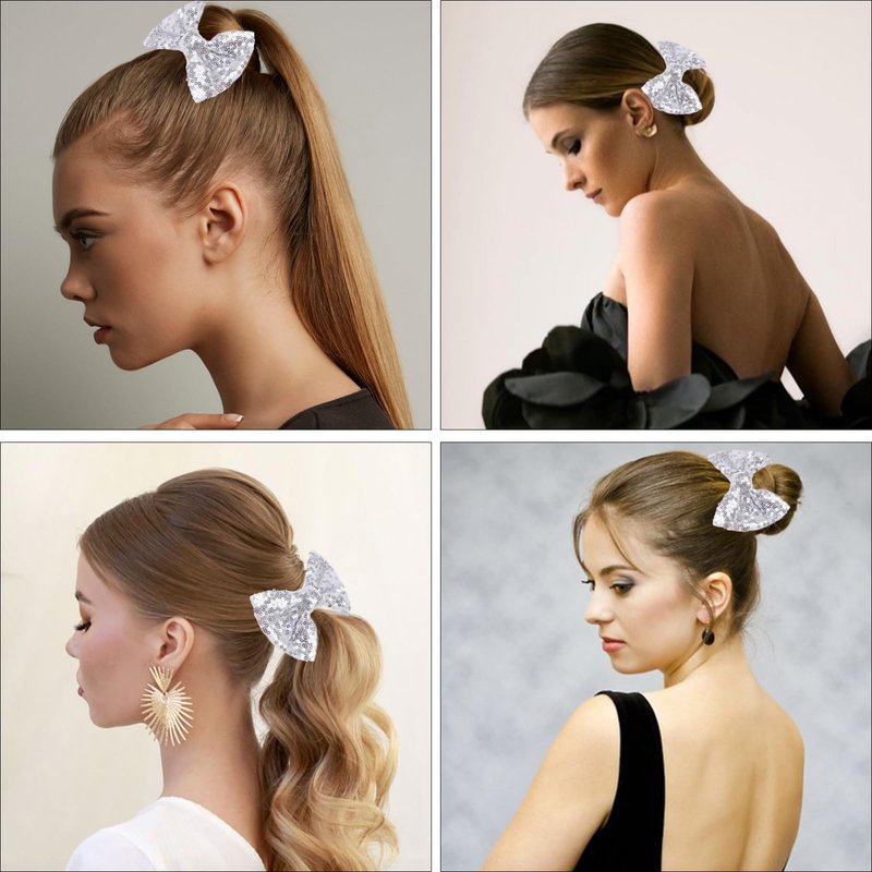 4 Pack Gold Glitter Sequins Bow Hair Clip Hairpin for Girls Cheer,Dance Recital,Birthday Shirt,Themed Party Festivals