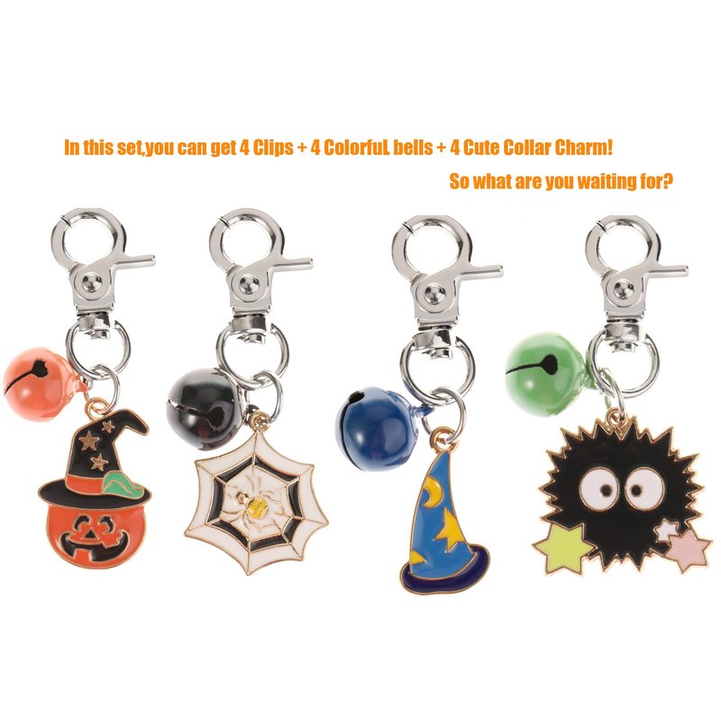 4 Pack Halloween Cat Collar Bells,Training Charm Pendants Jewelry for Pet Dog Cat Necklace Collar