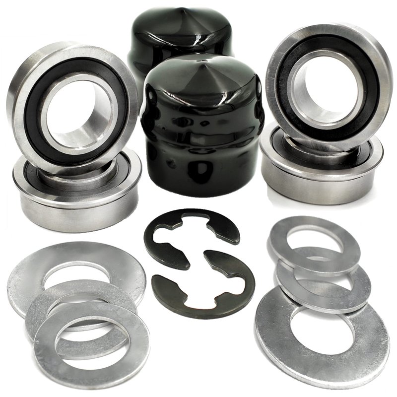 The HD Switch Bushing to Bearing Conversion Kit Includes EVERYTHING You Need to Rebuild Your Front Wheels. Most "High End" Machines use Wheel Bearings instead of Bushings. Here's why: Bearings Create MUCH Less Drag and Is Gentler on the Grass. Unlike Most Sellers, We Provide a COMPLETE Conversion Kit and ALL the Required Hardware. PLUS FREE HUB CAPS! The HD Switch Conversion Kit Includes Everything Shown: (4) High Quality Sealed Flange Wheel Bearings with Our Premium Grease Upgrade, (2) Hub Cap Retainer Washers, (4) Heat Treated Thrust Washers (Highly Recommended for Conversion from Bushing to Bearing), (2) New E-Clips and (2) New Hub Caps.