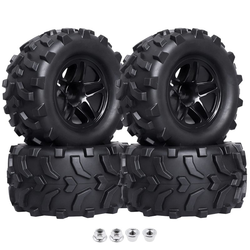 (4-Pack) HobbyPark RC Truck 2.8" Tires & Wheels Rims with Foam Inserts 12mm Hex Hub for 1/10 Electric/Nitro Power Off Road Monster