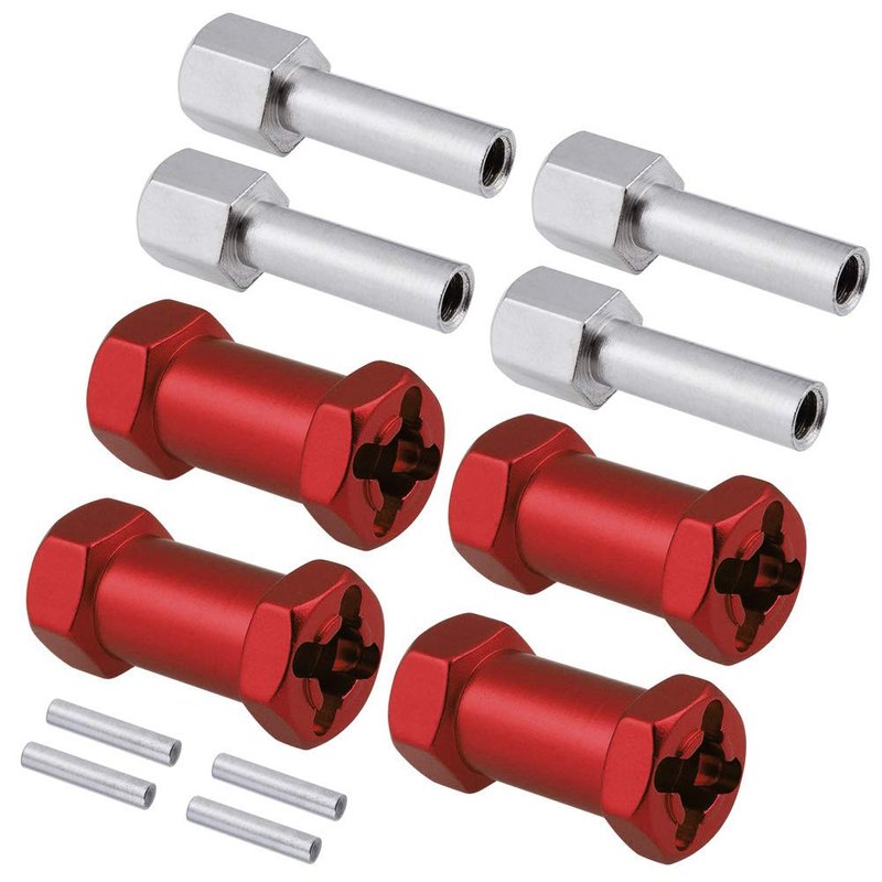 4-Pack HobbyPark RC Wheel Spacers 12mm Hex Drive Hubs Combiner Coupler Aluminum 25mm Offset Extension for 1/10 RC Crawler Car Parts (Red)