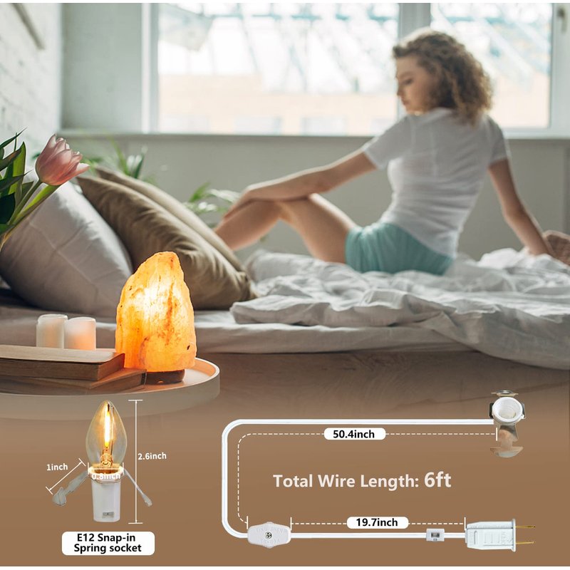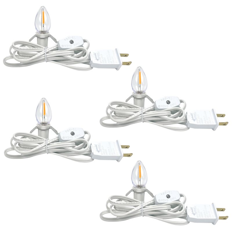 4 Pack Lights Accessory Cord with 4 C7 Led Light Bulb, Clip-in Lamp Cord Replacement, Candelabra-Base E12 Socket White Cord with On/Off Switch Pluggs for Holiday Decorations