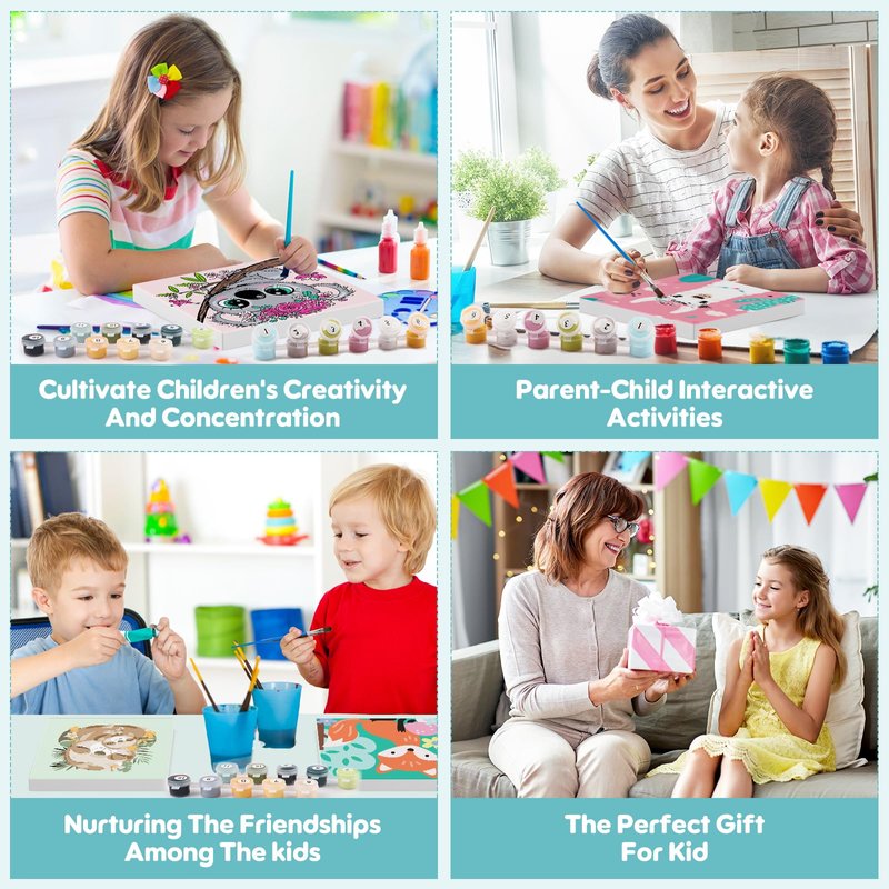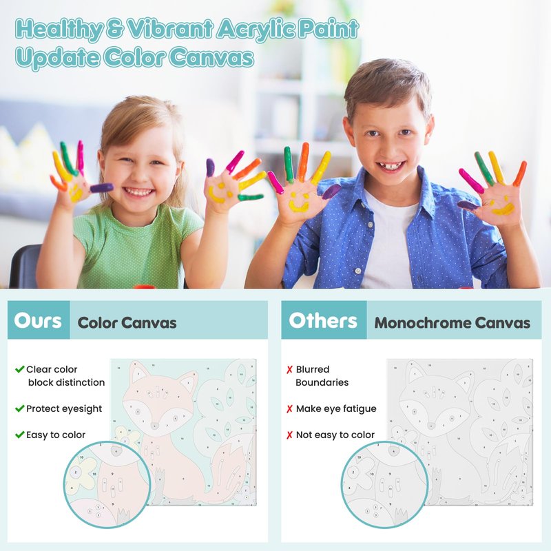 - Fun and Easy to Paint: Using our cartoon kids canvas painting kit is a great way to relax and help improve hands-on painting skills. No painting skills are required, just paint the canvas with the appropriate number, making painting fun and easy for kids, beginners and professionals alike