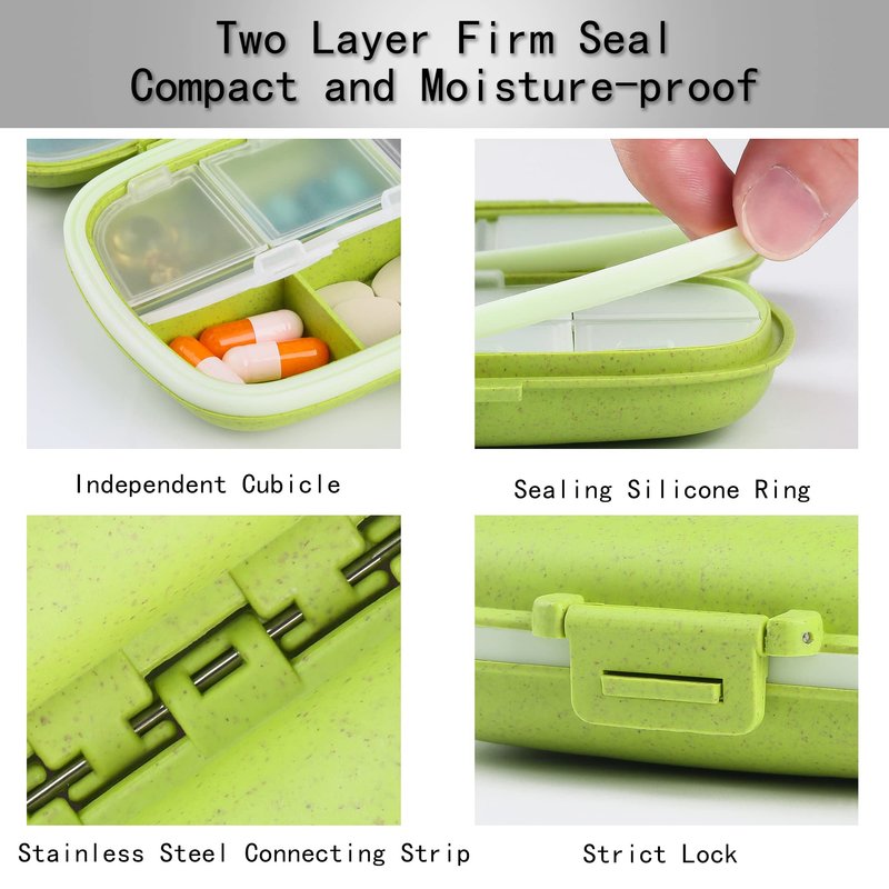 - ❤ [Pill Organizer Compartment] The pill box has 8 compartments, 6 small compartments for small pills, 2 large compartments for large capsules. The inner cover and sealing ring are removable for easy cleaning.