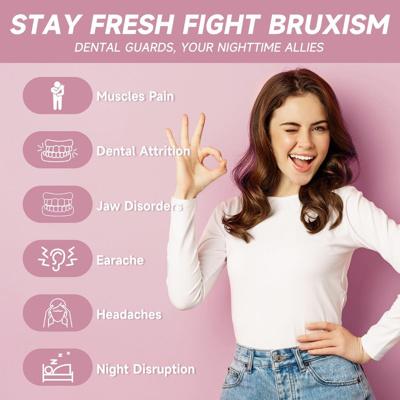 - ➤【All-in-One Protection】Experience the versatility of our professional mouth guard. Not only does it shield teeth from grinding and clenching, but it also offers relief from jaw pain, TMJ discomfort, headache, earache, muscle pain and dental attrition. In essence, this comprehensive solution ensures your teeth's protection in various situations.