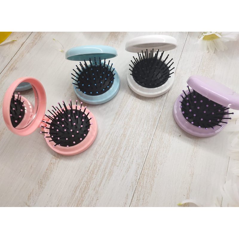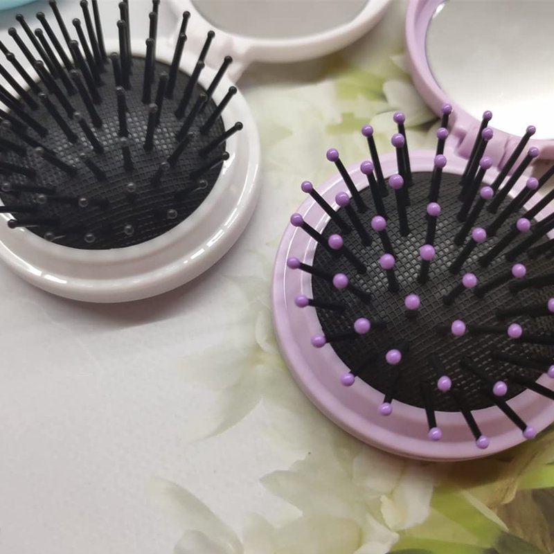 - Round folding pocket hair brush easy to use, Just pop up the anti-breakage air cushion to detangle hair knots and smooth it.