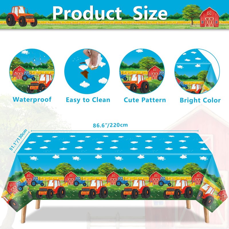 - Easy to Use: The farm party table cover set is super convenient. Only open the package and set it up. Buy this tractor table cloth set to protect your table from scratches and stains, keeping it clean and tidy. You can use a wet cloth or paper to remove the remaining dirty stuff, such as messy spills from food of many, drinks, paint, and more. Table covers are reusable or thrown away to save you time and energy, allowing you to spend more time with your family and friends to enjoy the party.