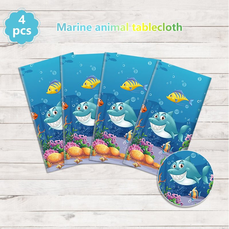 - Ocean Animal Party Tableclothes Set: Package Includes 4 packs of under the sea theme plastic party tablecloths, designed with vibrant underwater scenery patterns like sharks, dolphins, crab, octopus, the blue sea, ocean waves, coral, various colorful fishes, seagrass, jellyfish, which can add ocean party atmosphere, the exquisite pattern makes you feel like diving under the water.