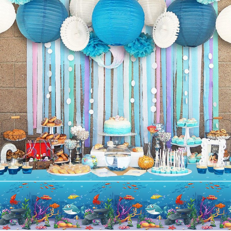 - Great Ocean Animal Table Cover Multiple Uses - These vibrant ocean sea life party table covers are a perfect complement to your party, ocean sea theme birthday party, baby showers, summer party, kid anniversary, celebrations, fancy dress party, family dinners, buffets, or outdoor picnics.These blue sea animal tableclothes are designed with interesting elements so that everyone will love these chic designs. Decorating your home and party with our ocean sea animal table cover will be a great choice for your summer Sea party!