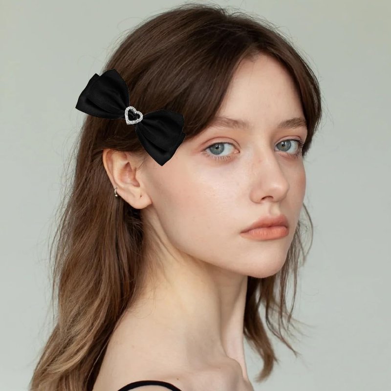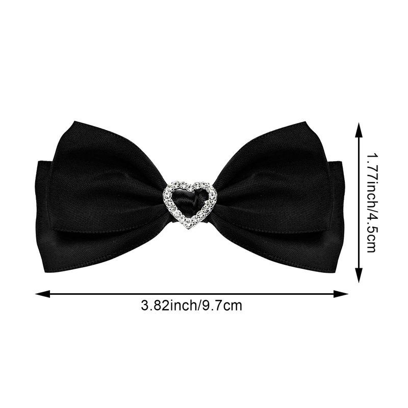 4 PACK Valentine's Satin Hair Bow Clips, Heart Rhinestone Styling Bow Barrettes Handmade Bowknot Hairpins Hair Accessories for Women Girls (Black+White)