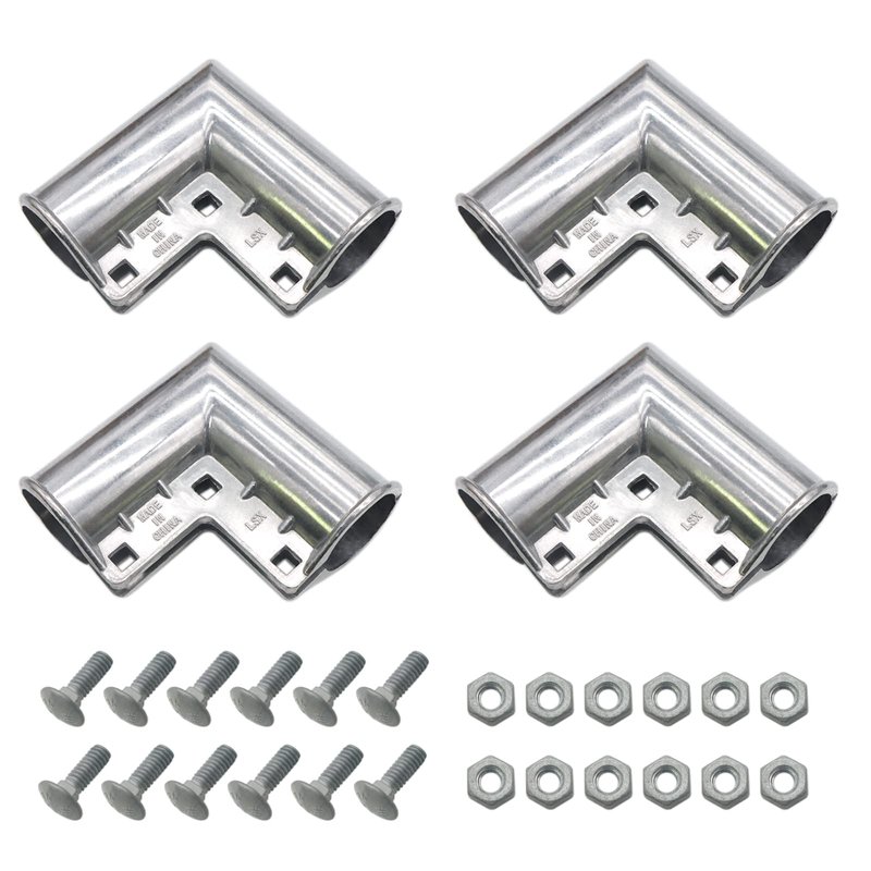 4 Packs Aluminum Chain Link Fence Gate Corners, Gate Elbow with 90 Degree Angle Design for 1-3/8" x 1-3/8" Outdoor Diameter Pipe, Pressed Gate Corner Include Bolts, Easy to Install on Gate