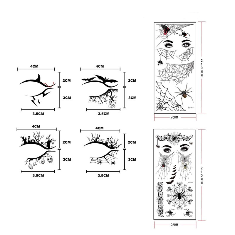 - 🕸️Packing: 4 pairs of eyeshadow stickers and 2 large sheet spider web bat tattoos each pattern is unique, and seems very realistic and natural. These Various pattern tattoos meet your Halloween makeup needs.