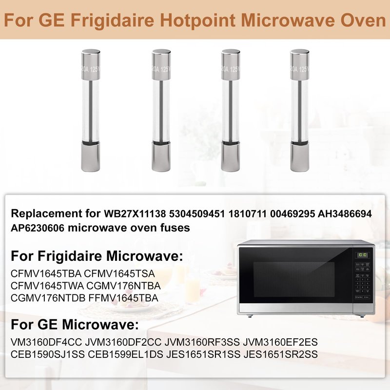 - ---Product Replacement Model: The microwave oven fuses is suit for GE frigidaire hotpoint microwave oven, can replace microwave oven models WB27X11138 5304509451 00469295 1810711 30469294 AH3486694 AP4980426 AP6230606 EA3486694 PS3486694 PS5136235 1381114 50462164 70462163 79083383710 261201200040 AP5648907 PS12071294 50469293 5304464087 5304488359 WB27X10388