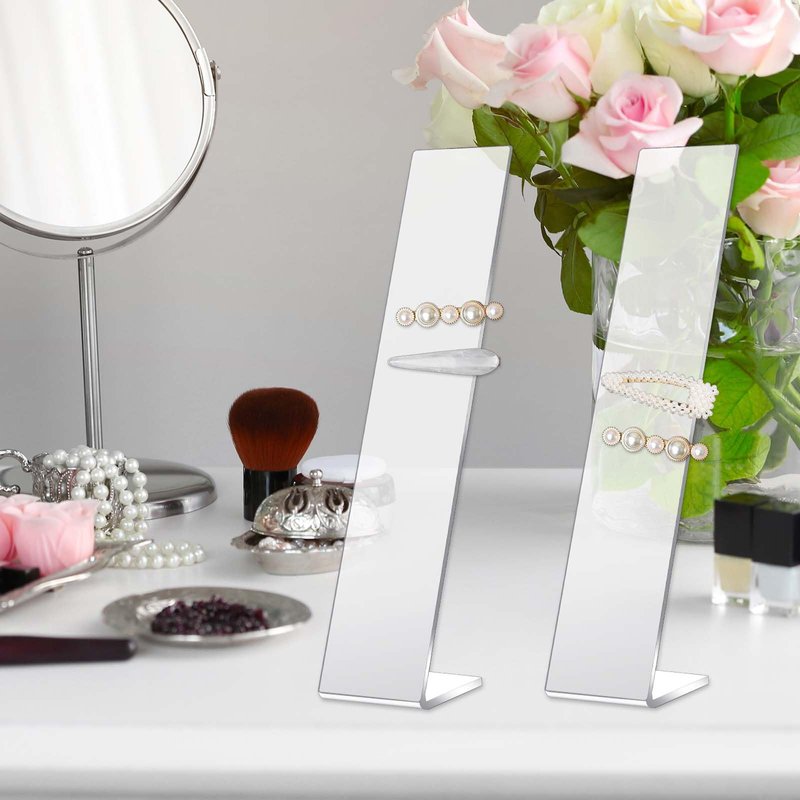 4 Pcs Acrylic Clear Hair Clip Display Stand L-Shaped Hairpin Display Holder Barrette Display Stand Holder Hair Clip Organizer Stand Holder Bracelet Bangle Display Stand for Teen Girls Women