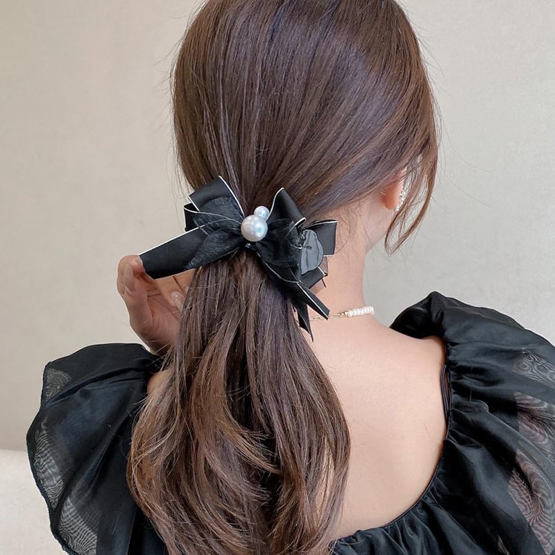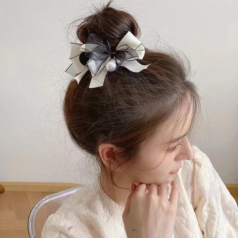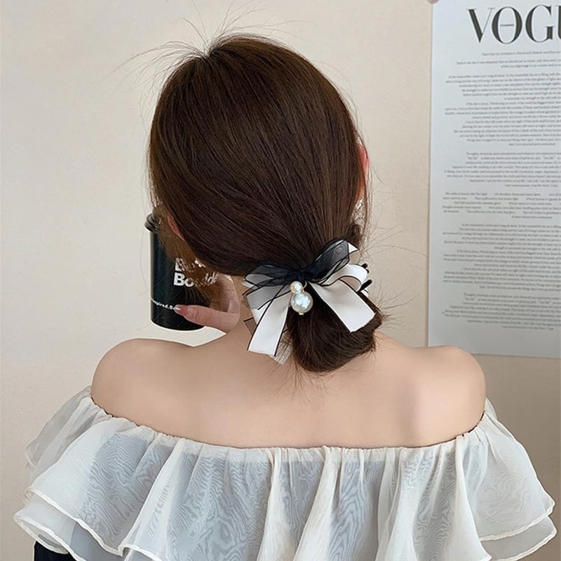 4 Pcs Bow Pearl Hair Clips White Black Ribbon Bowknot Hair Claws Ponytail Holder Headwear Accessories for Women Girls