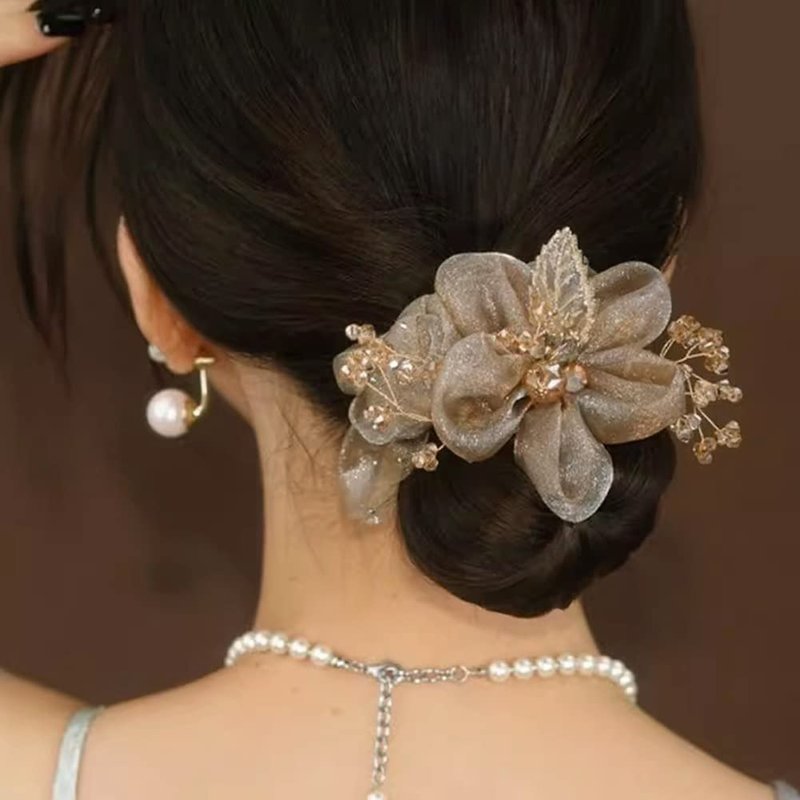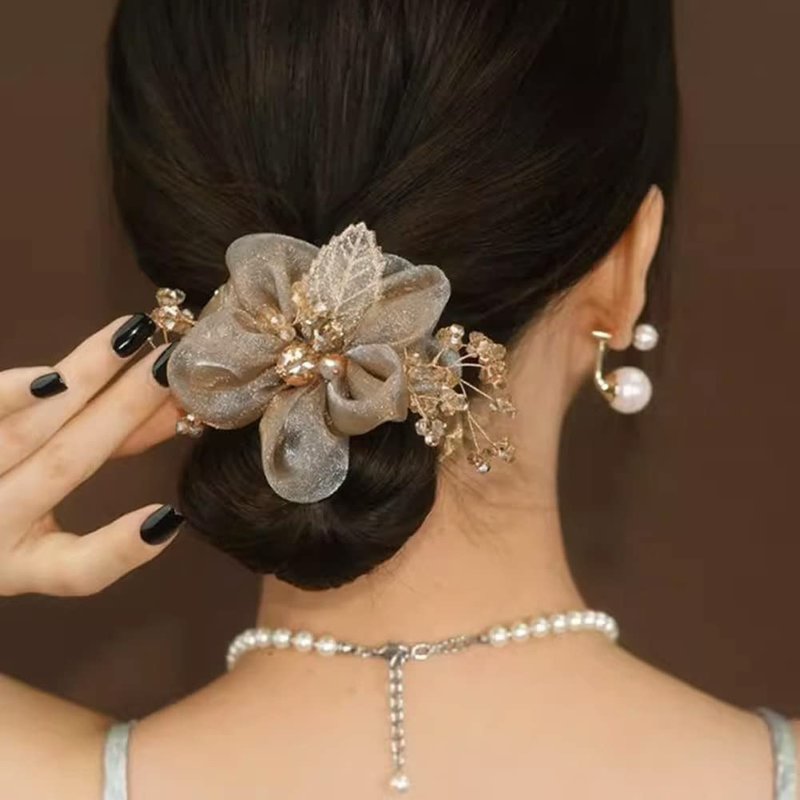 - 【Package Include】5 Pcs flower leaf crystal elastic hair ties.