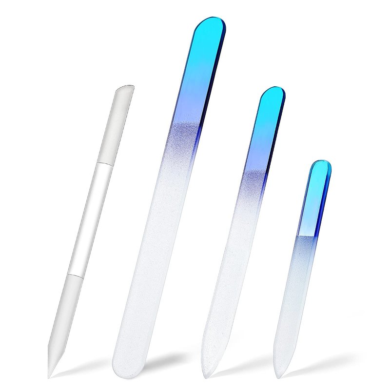 4 Pcs Glass Nail File Set Fingernail Files and Cuticle Pusher Double Sided Crystal Nail Files for Natural Nail Manicure Pedicure Nail Buffer Cuticle Trimmer Foot Callus Remover (Gradient Blue)