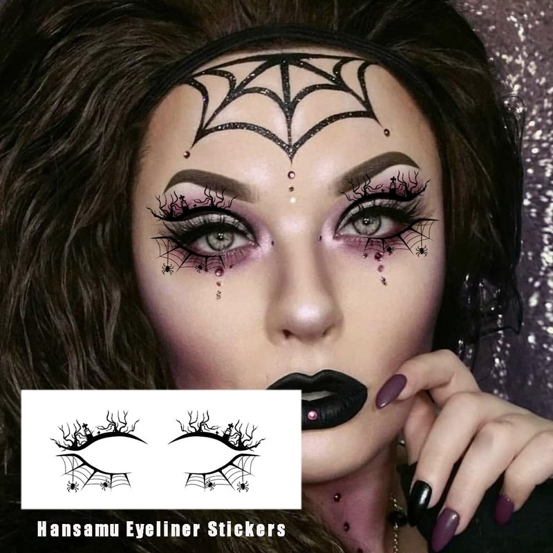 - Package: You will get 4 pairs of eyeliner stickers with spider web etc. Halloween theme design