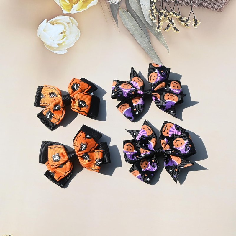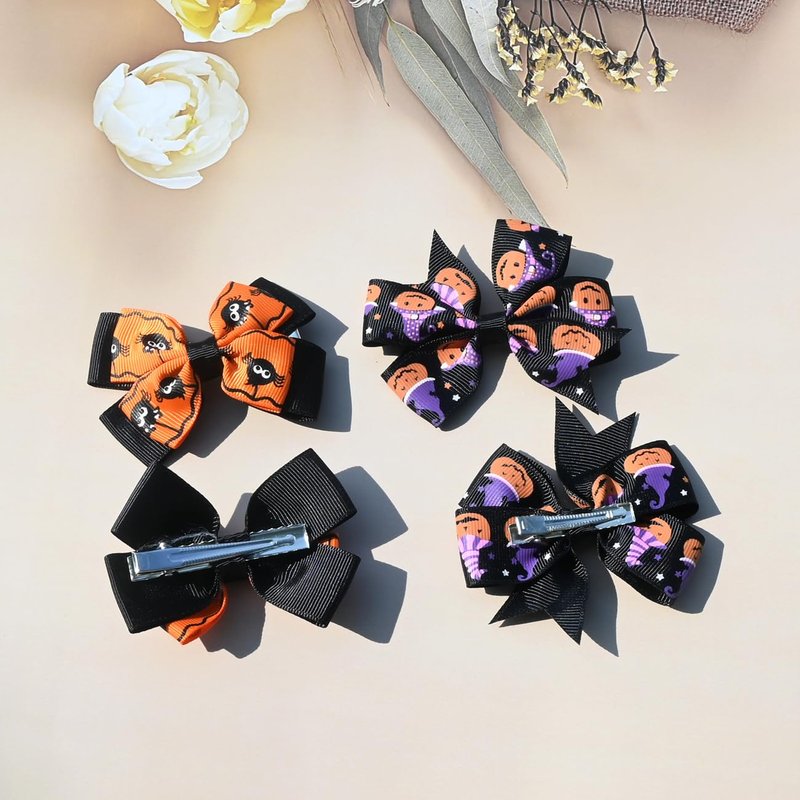 Package Includes - 4 Pcs/2pairs Halloween Bow Style Hair clip accessories, exquisite designs and festival elements that make the hair clip quite suitable for Halloween Day hair decoration.