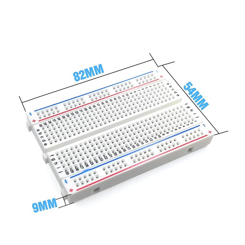 - 400 Points Solderless Breadboard with 2 Positive & Negative Power Lines on both ends.