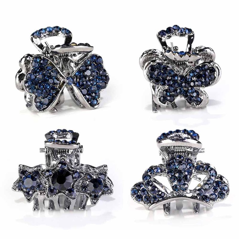 4 Pcs Mini Metal Hair Claw Clips Blue Rhinestone Hair Jaw Clamps Small Vintage Hair Grips Non Slip Hair Barrettes Hair Accessories for Women and Girls