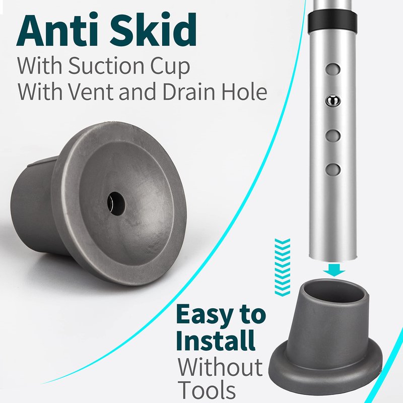 - NON-SLIP & WATERPROOF. - As shower chair replacement accessories, Replacement rubber feet pads are made of high-quality durable rubber, whick is wear-resistant, come with steel and reinforced with metal insert for skid-resistant traction, 0.35 inch thick rubber bottom disc, with suction cup for more power grip and anti skid. Waterproof and dry quickly, never need hang it out to dry.