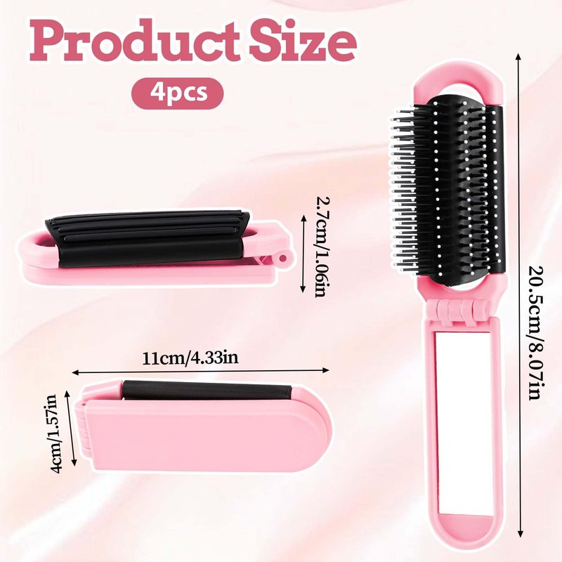 4 PCS Travel Brushes for Hair, Mini Hair Brush Travel Hair Brush Foldable Compact Hair Brush with Massage Comb Pocket Size Travel Brush Travel Hairbrush for Hair Styling, Gym, Trips, and Purse