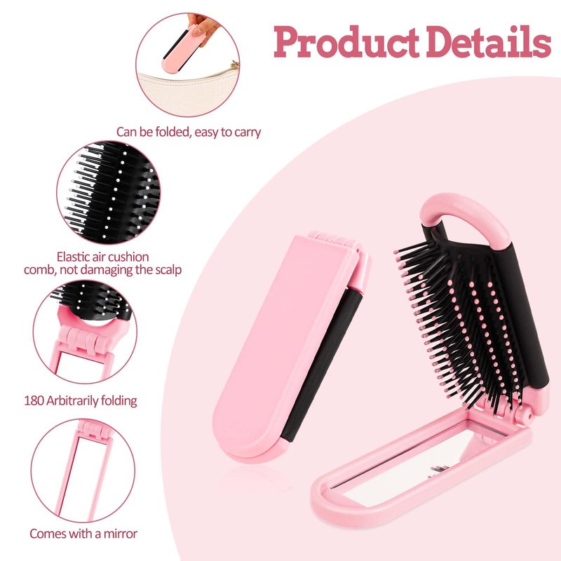- 【Mirror Design】This travel hairbrush is equipped with a small and exquisite smooth mirror. The design with a mirror can help you check your makeup at any time. It allows you to comb your hair and makeup smoothly and very conveniently