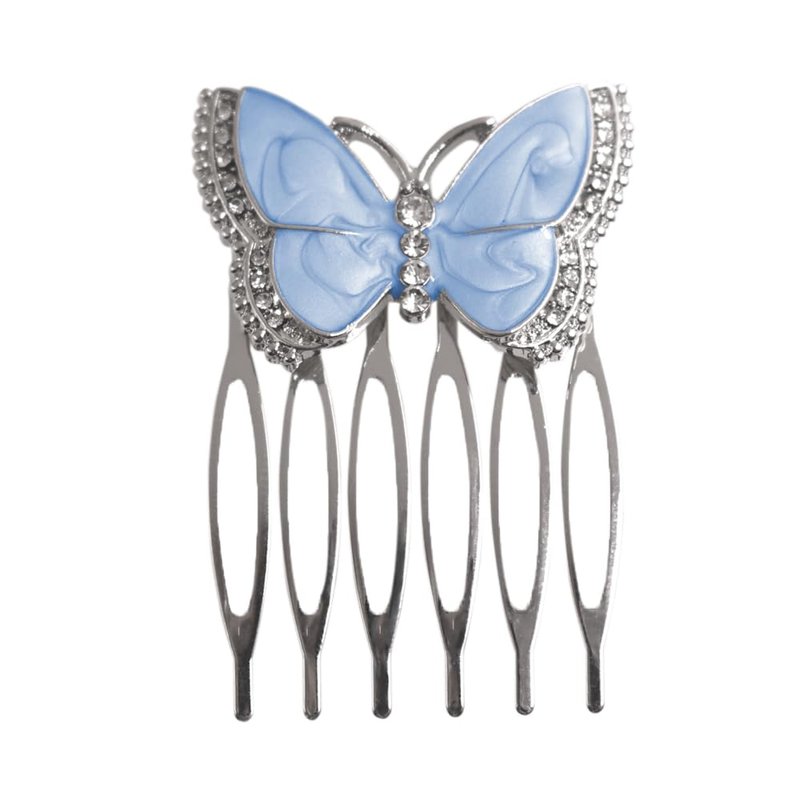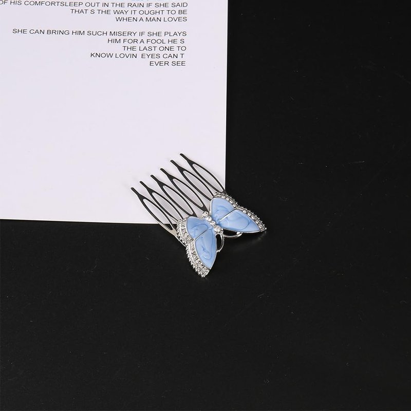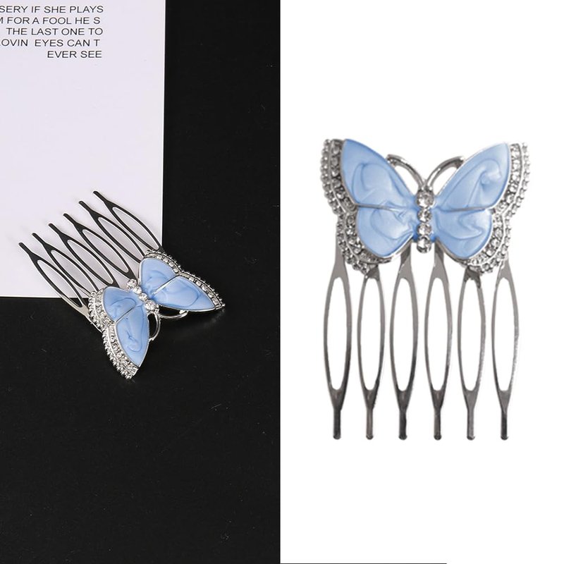 - Design: This comb features a butterfly with crystals as it appearance. The wings of butterflies are filled with blue, making the colors brighter and more vivid, showcasing your unique aesthetic.