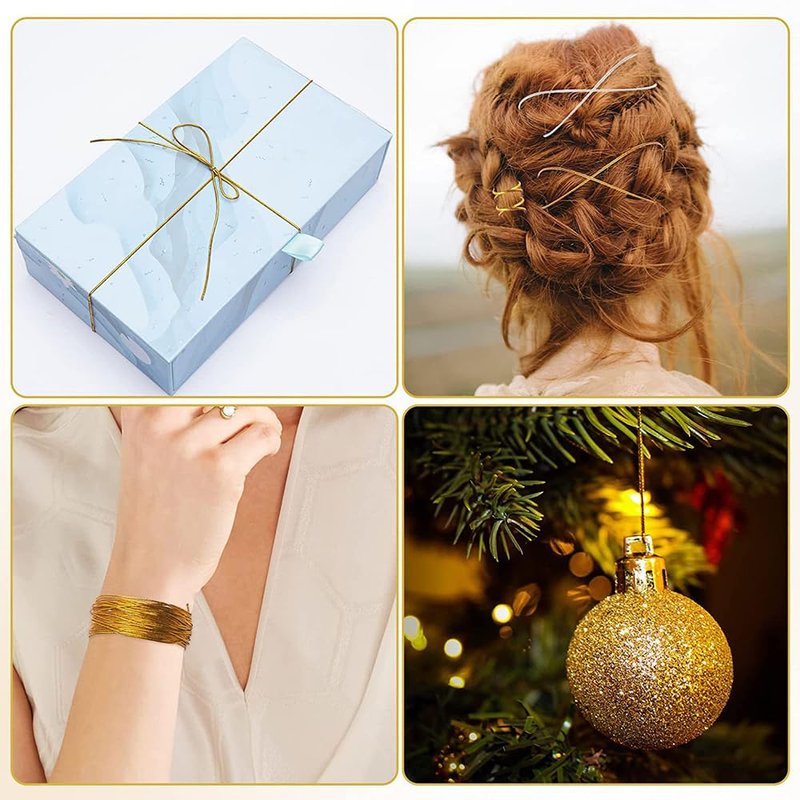 - [Package Contents]: The package contains 4 strands of metal strings (2 gold strands, 2 silver strands). The length of each strand is 196.8 inches, and the diameter of the metal rope is about 1 mm, which is enough for different purposes.