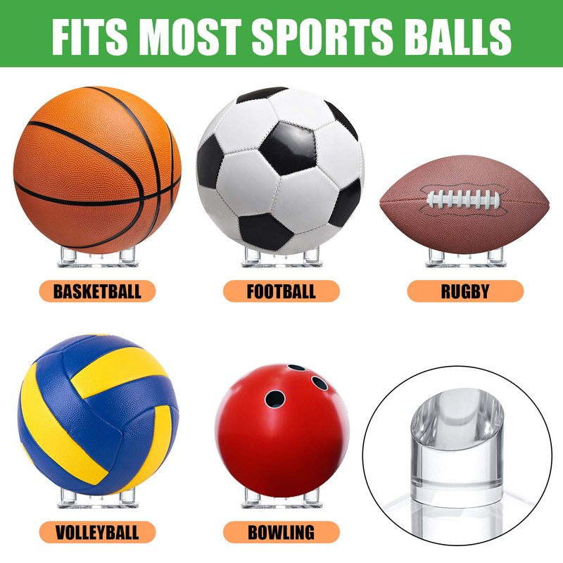 4 Pieces Acrylic Ball Stand Holder Display Stand Clear Sports Ball Storage Display for Footballs Basketballs Volleyballs Soccer Balls Bowling Ball Display