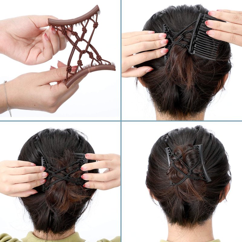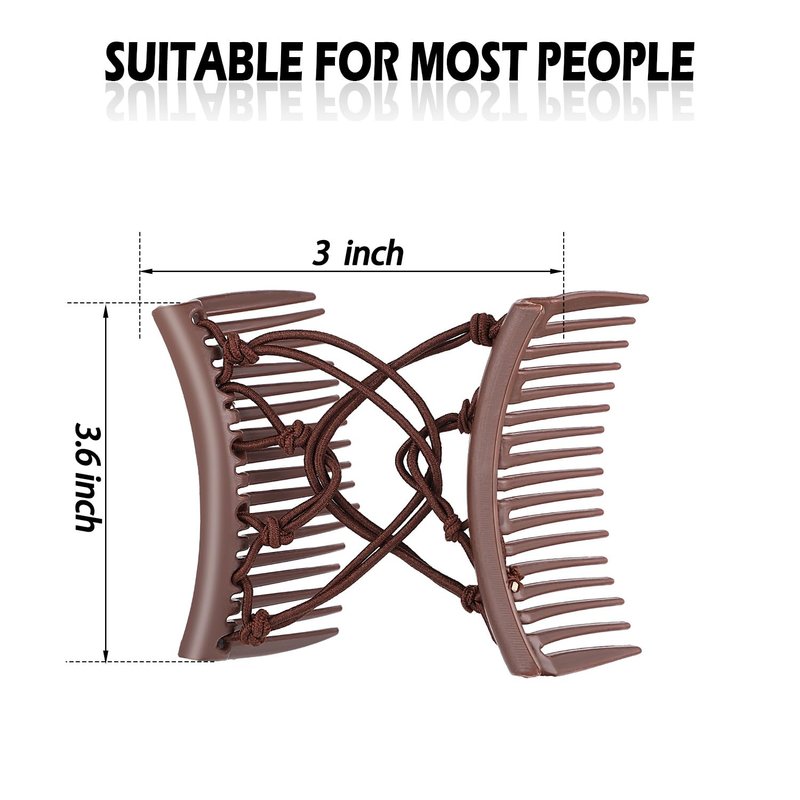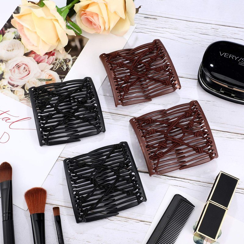 4 Pieces stretchy double comb hair clip adjustable elastic hair comb no crease hair pins hair accessories for women curly thick wavy hair ponytail