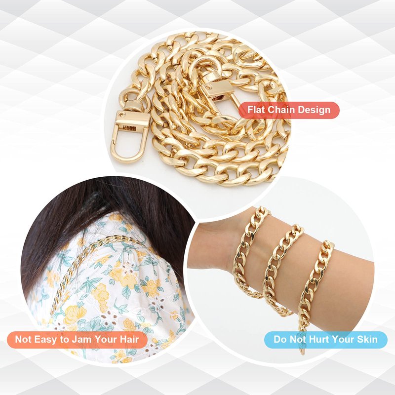 - Comfortable and functional, these 0.3inch purse chain strap can help reduce shoulder pressure and will not hurt your skin; Apart from that, the wide holes is able to prevent your hair from being jammed by the chains