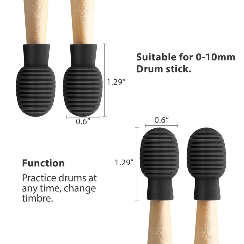 - Dimensions: each drum dampener accessory is 1.4 inch/ 3.5 cm in length with a soft rubber mallet head that is 0.6 inch / 1.6 cm which can practice outside even without drums at hand, just bring the drumsticks with drum mute on it