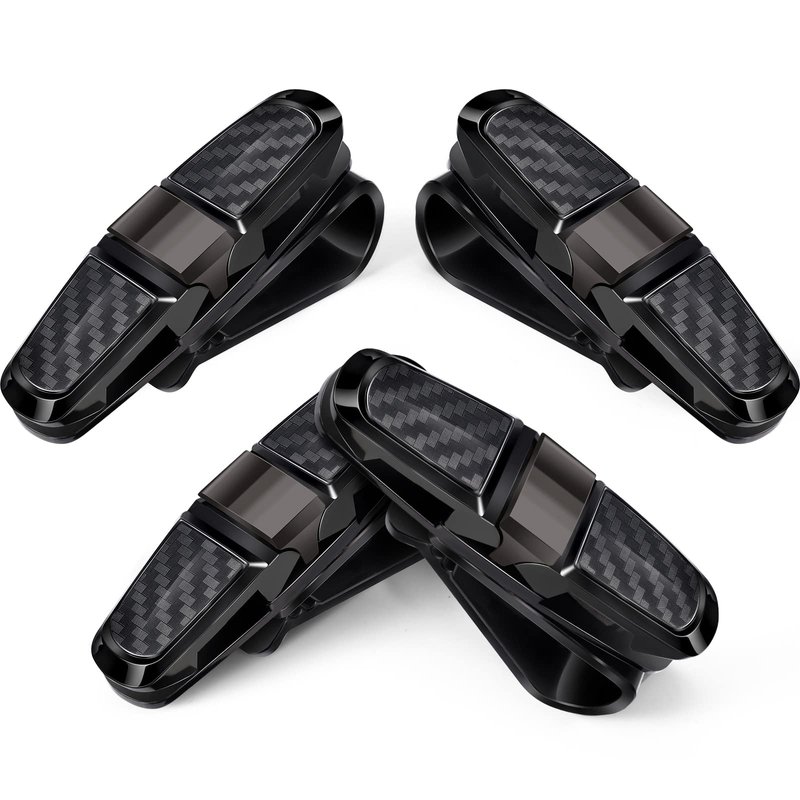 4 Pieces Glasses Holders for Car Sun Visor, Sunglasses Holder Clip Hanger Eyeglasses Mount, Double-Ends Clip 180 Degree Rotational Car Glasses Holder (Black)