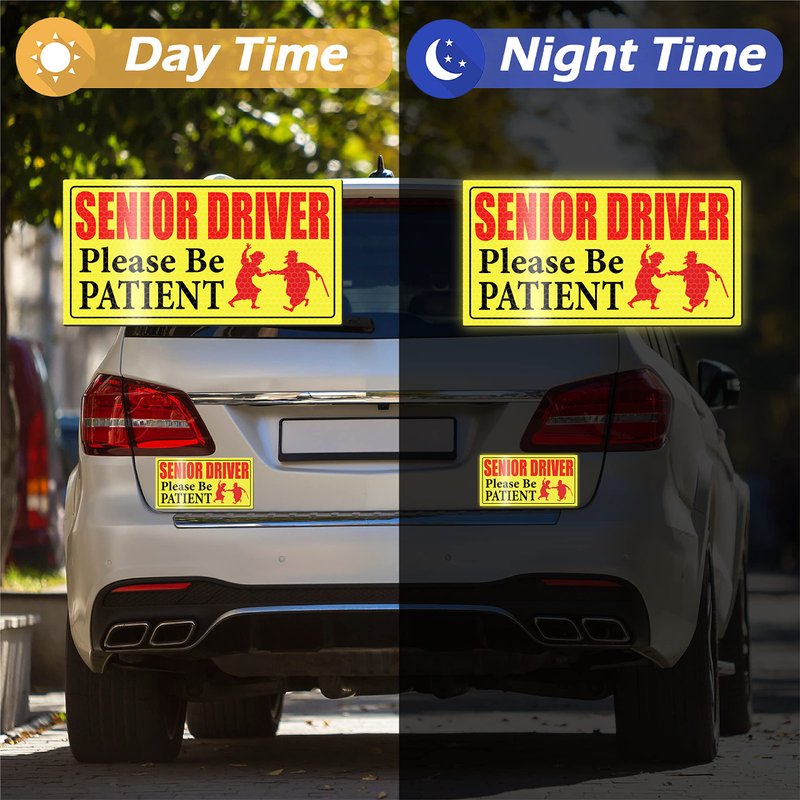 - What Will You Receive: this package contains four senior driver car magnets, measuring about 7.5 x 4 inches; Put these magnetic stickers around your car, and the reflection technology allows you to drive safely in weak light or night driving conditions