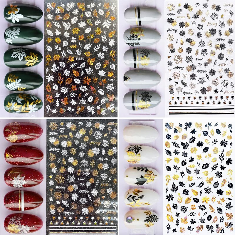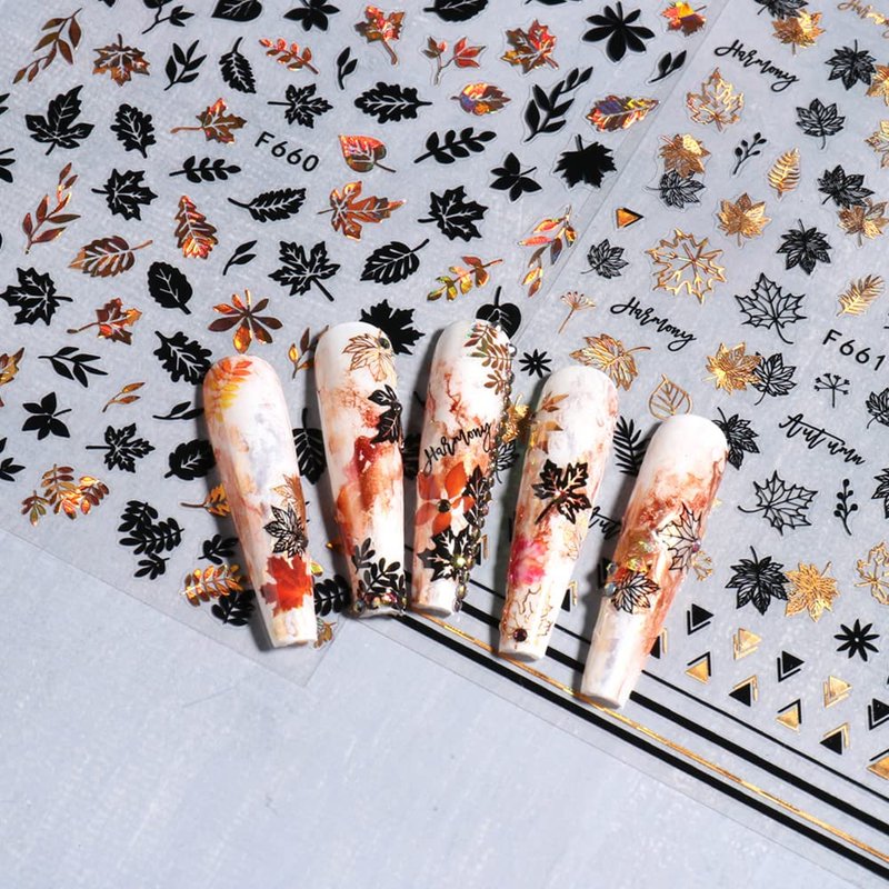 - 【Easy to Use】- 3D autumn nail art stickers are self-adhesive; so just choose you liked pattern, just use tweezers peel off to stick it gently your nail, applying over a base coat or nail polish will be better.