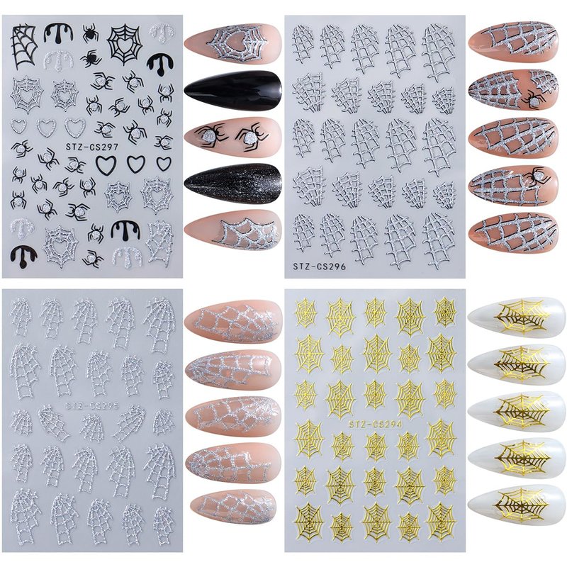 - Halloween Nail Art Stickers: You will get 4 sheets Halloween nail designs stickers in one set of different spider web nail stickers, satisfy all your love for beautiful nails, a variety of elements for you to choose from to DIY your own nail art designs.