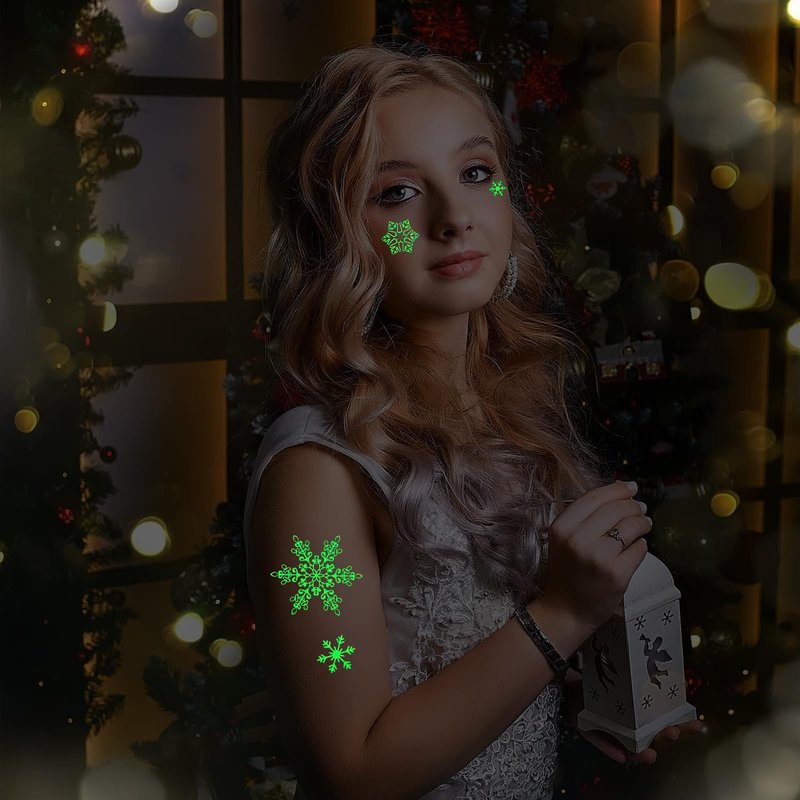 4 Sheets Snowflake Temporary Tattoos Glow in the Dark Tattoos Luminous Snowflake Stickers Body Face Decorations Cute Apparel Accessories for Winter Christmas Holiday Birthday Party Supplies