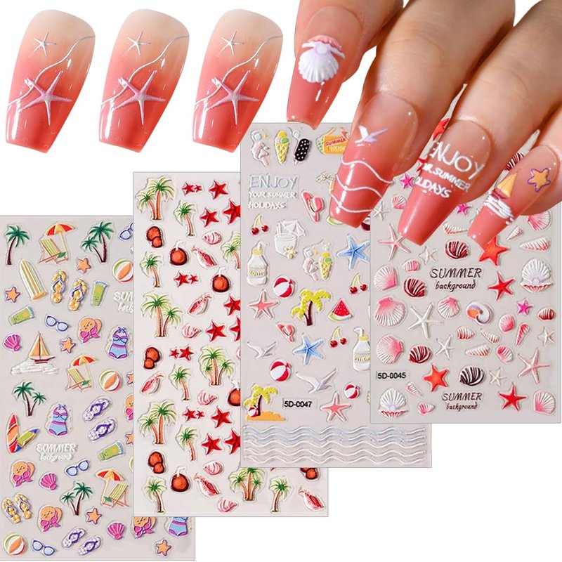 Quantity: 4 Sheets 5D Relief Summer Nail Art Stickers Decals